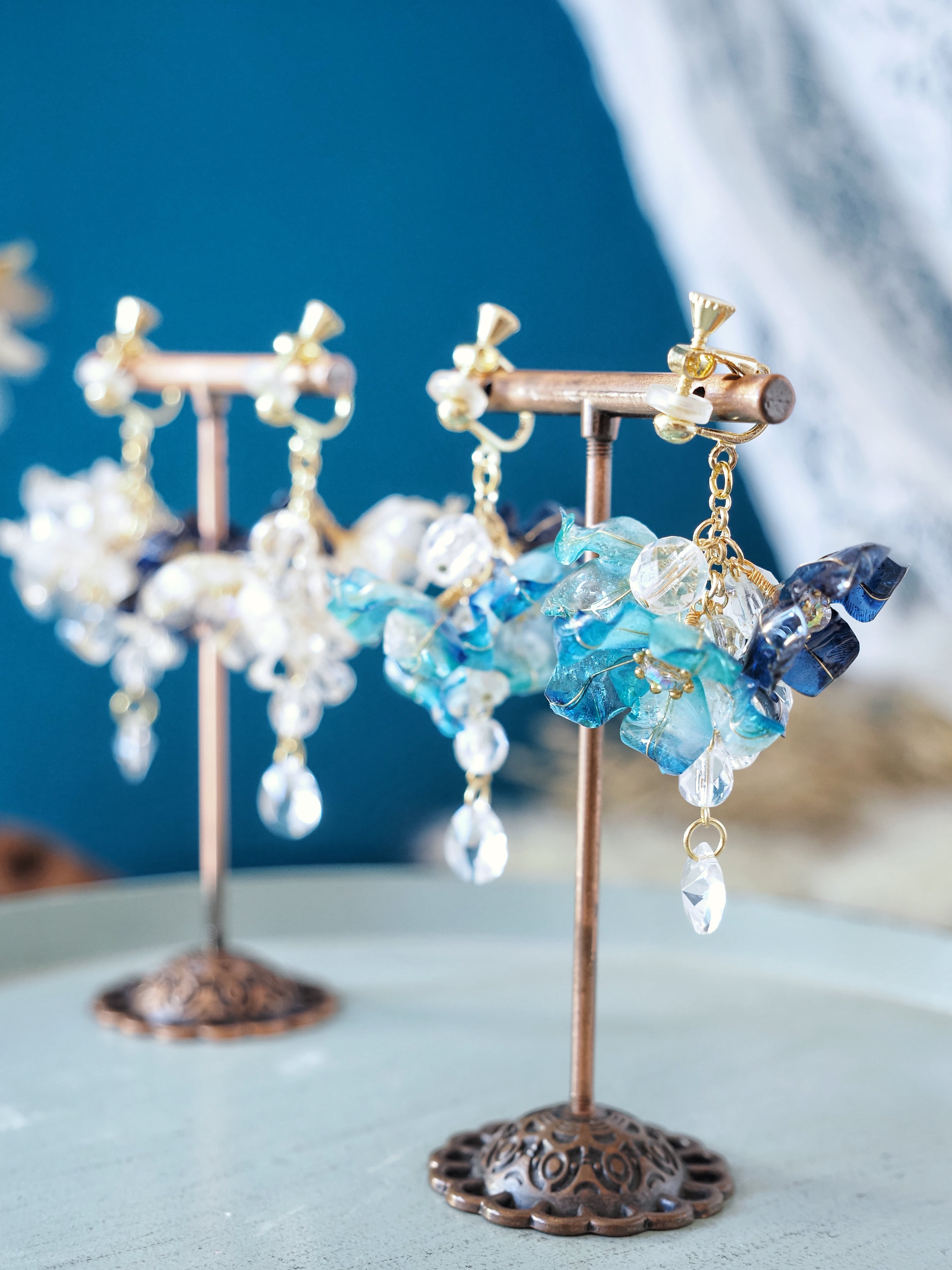 透明感あふれる花びらと、揺れるしずくパーツが魅力の